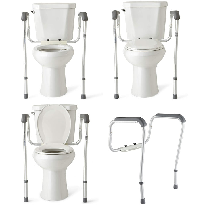 Cadru de sprijin pentru vasul de toaletă Regal Bliss® oferă sprijin sigur la ridicare și așezare, reduce riscul de dezechilibru și face mișcările de zi cu zi mai ușoare. Construit din aluminiu rezistent, cu înălțime reglabilă și picioare antiderapante, se potrivește în majoritatea băilor și îi ajută pe cei dragi să se simtă mai stabili și mai independenți.