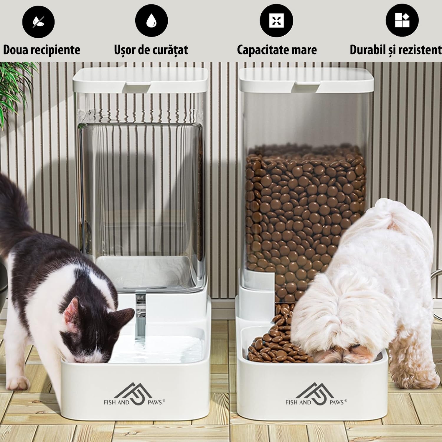 Setul automat pentru hrană și apă este gândit pentru proprietarii care vor să știe că animalul are mereu bolul plin – chiar și atunci când nu sunt acasă.