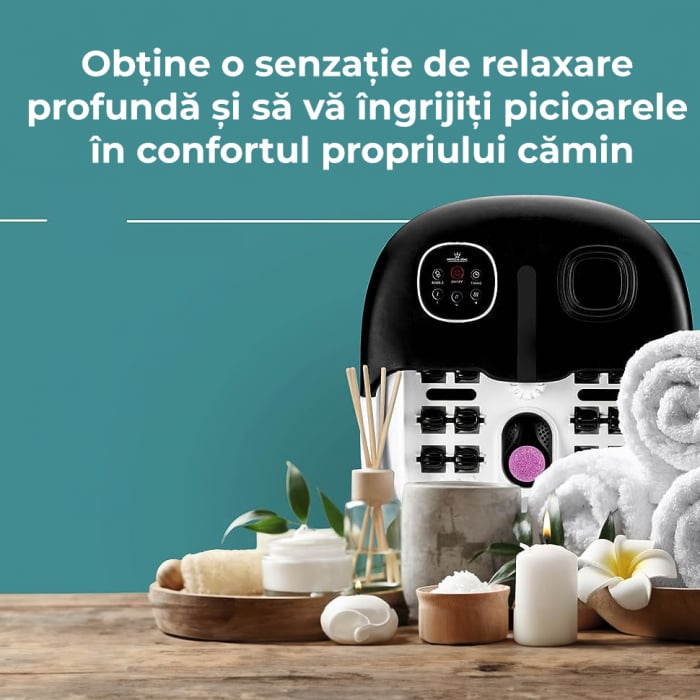 Combinația de hidromasaj, vibrații și bule stimulează ușor tălpile și ajută la îmbunătățirea circulației periferice, ideal după stat mult în picioare sau la birou.