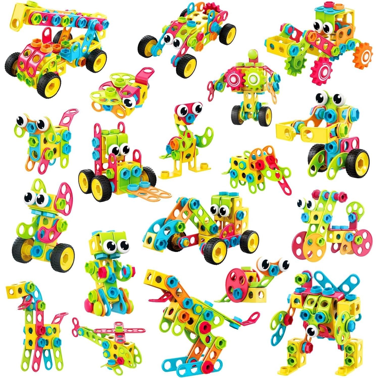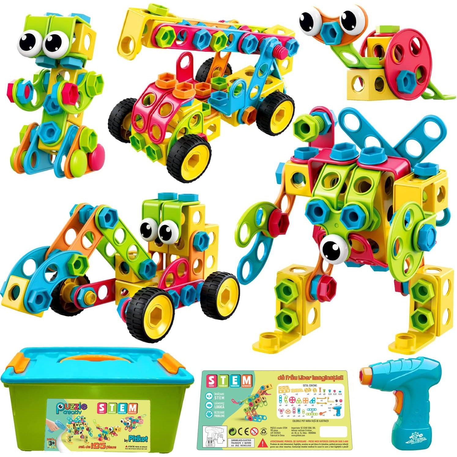 Jucărie educativă STEM Pitikot® cu bormașină de jucărie, set de construcție 3D pentru fete și băieți 6+ ani. Include 195 piese pentru modele variate și joacă interactivă.