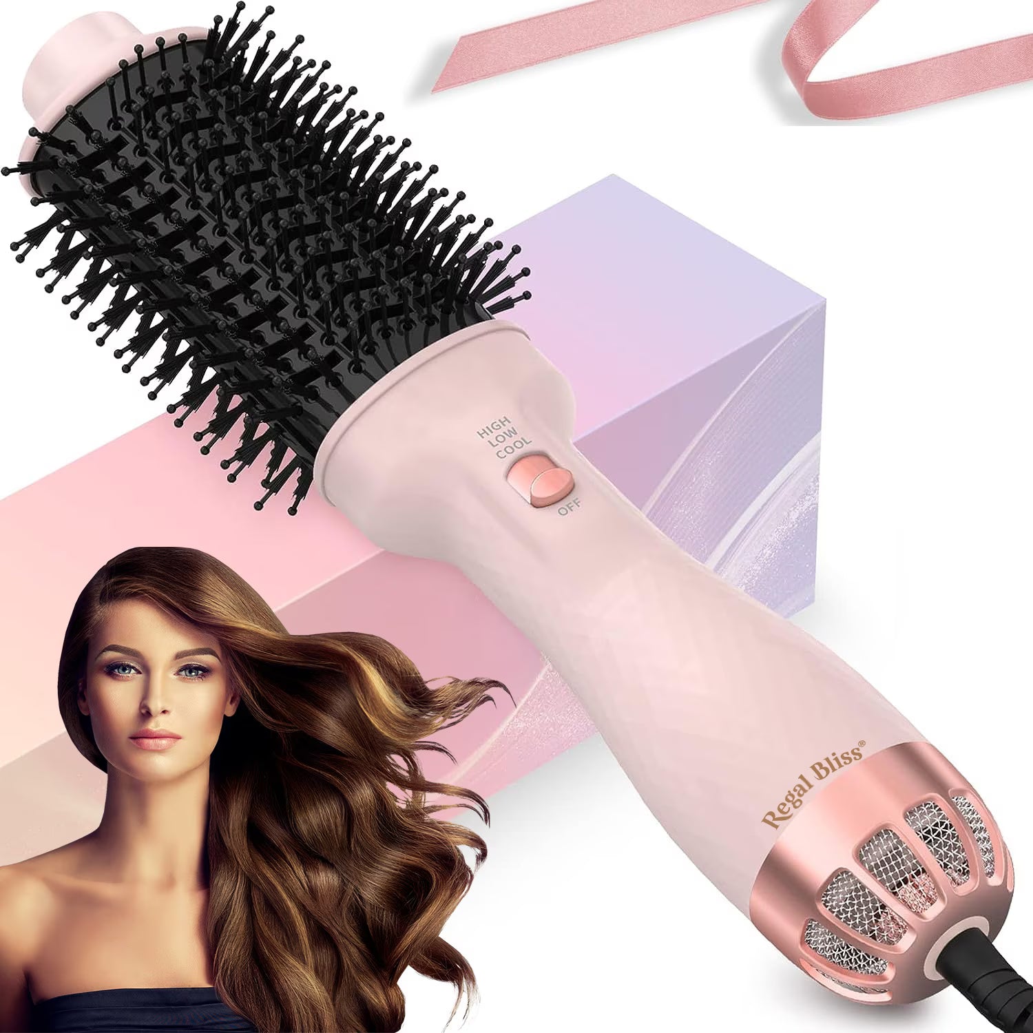 Peria electrică Regal Bliss® cu turmalină ceramică și ionizare negativă îți oferă uscare 360° + stilizare rapidă: volum la rădăcină, păr mai disciplinat și finish îngrijit — potrivit pentru orice lungime și tip de păr.