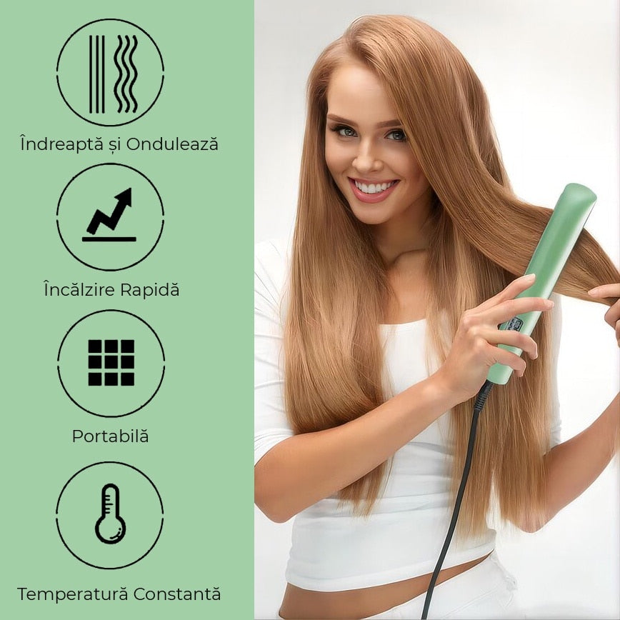 Glisează ușor pe șuvițe: ceramica distribuie uniform căldura pentru păr neted.