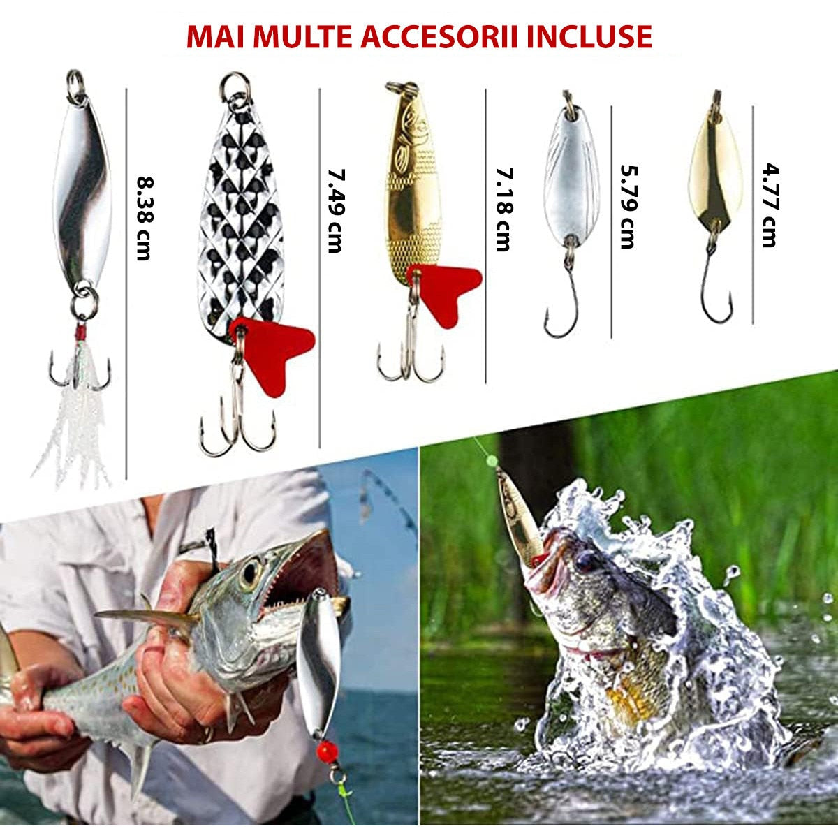 Da. Setul este gândit astfel încât să poți începe imediat, fără experiență avansată. Ai momeli variate deja incluse, iar schimbarea lor este simplă, fără monturi complicate sau accesorii suplimentare.