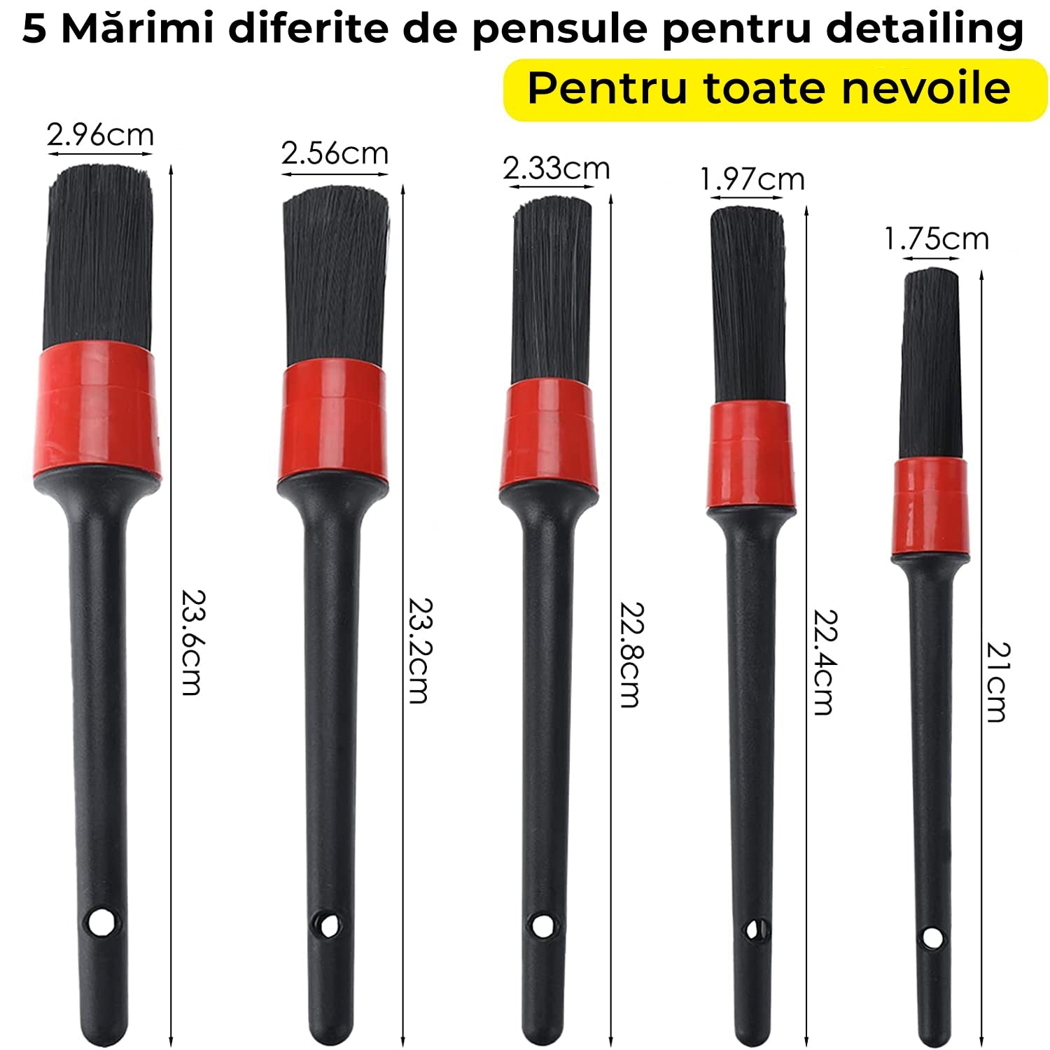 - 5 pensule detailing – pentru grile, butoane, colțuri și detalii fine.