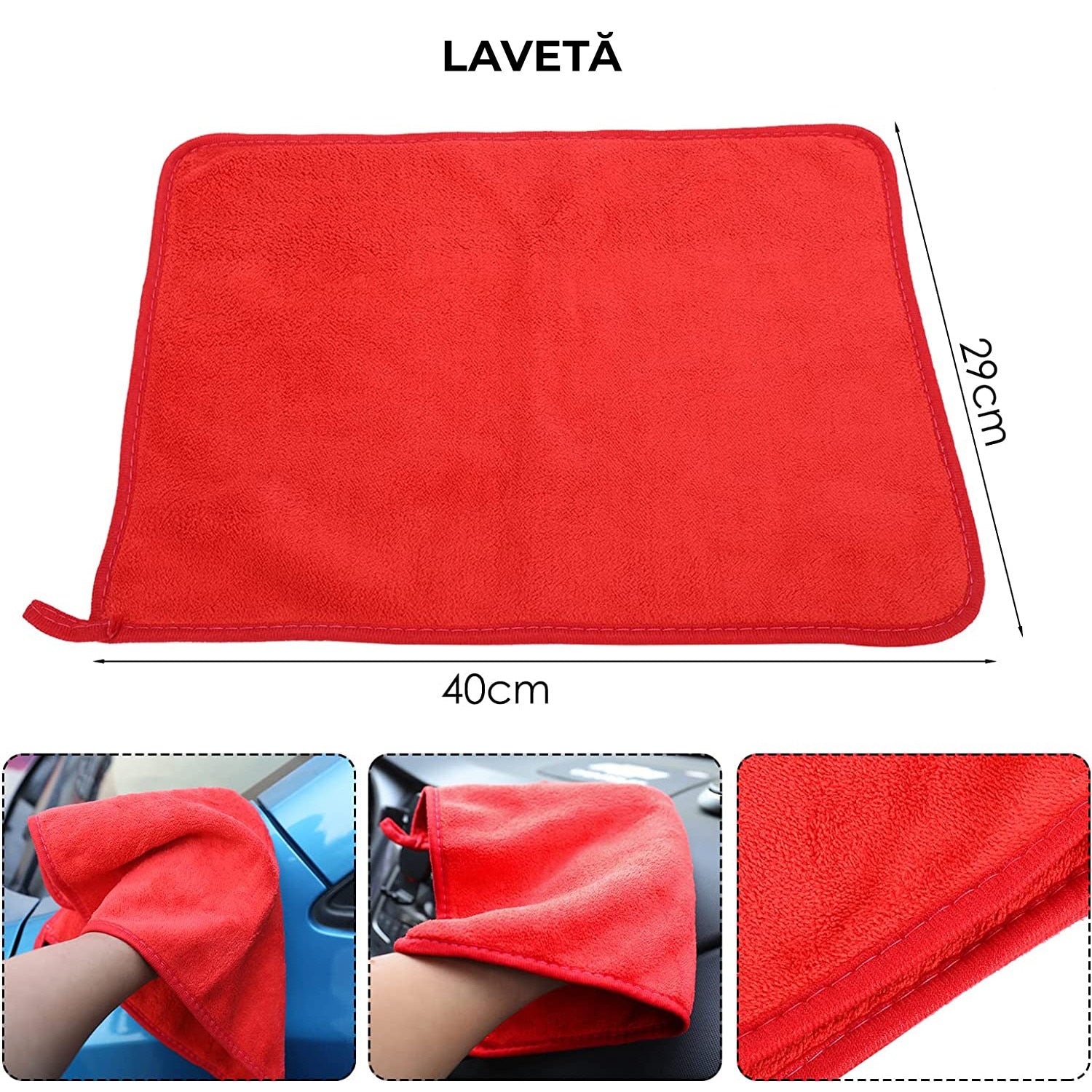 - Microfibră + bureți – ștergere fără urme, finisaj curat.